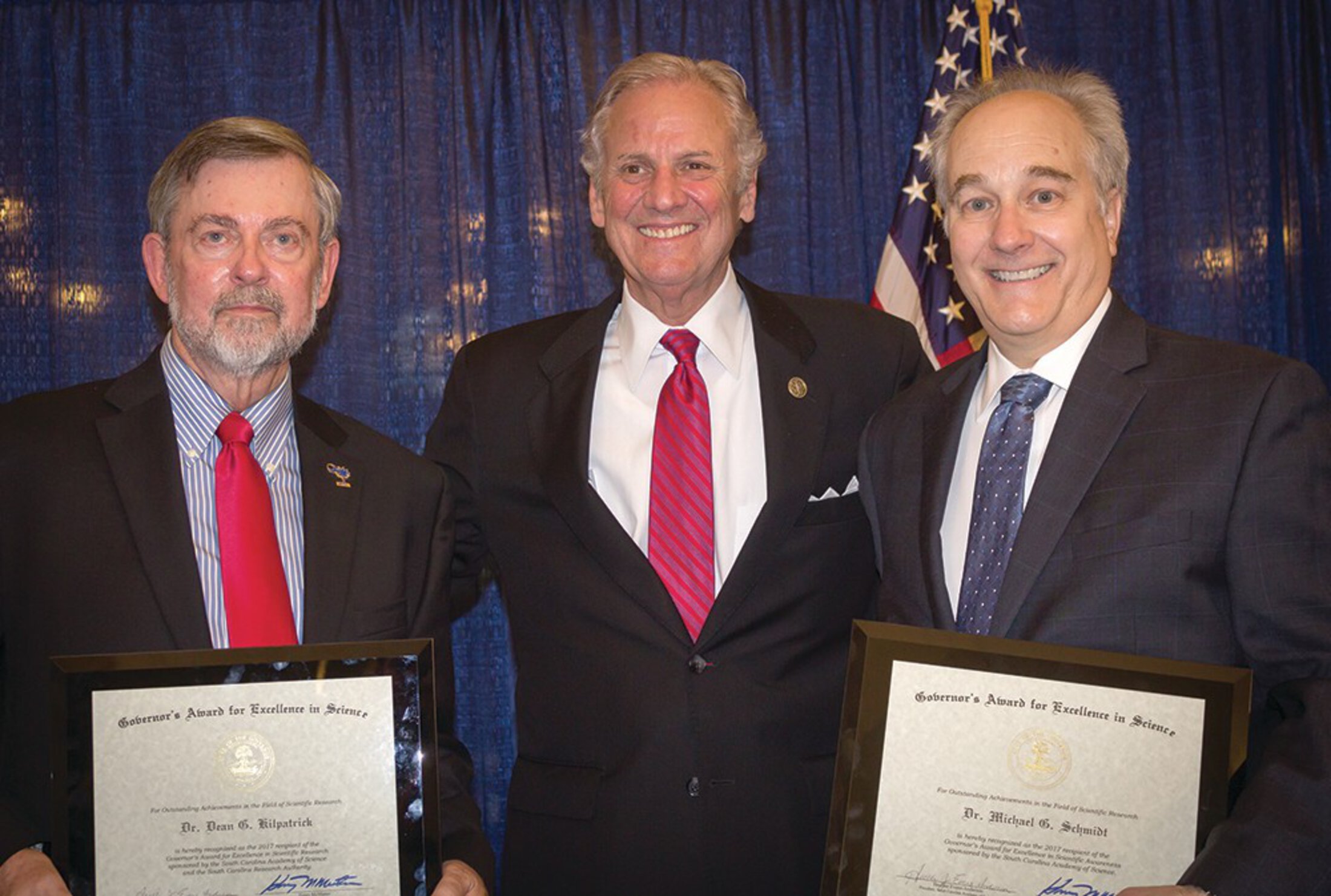 Dean G. Kilpatrick, Ph.D., and Michael G. Schmidt, Ph.D., were awarded the state’s highest honor, the Governor’s Award for Excellence in Science, during a ceremony Wednesday in Columbia.