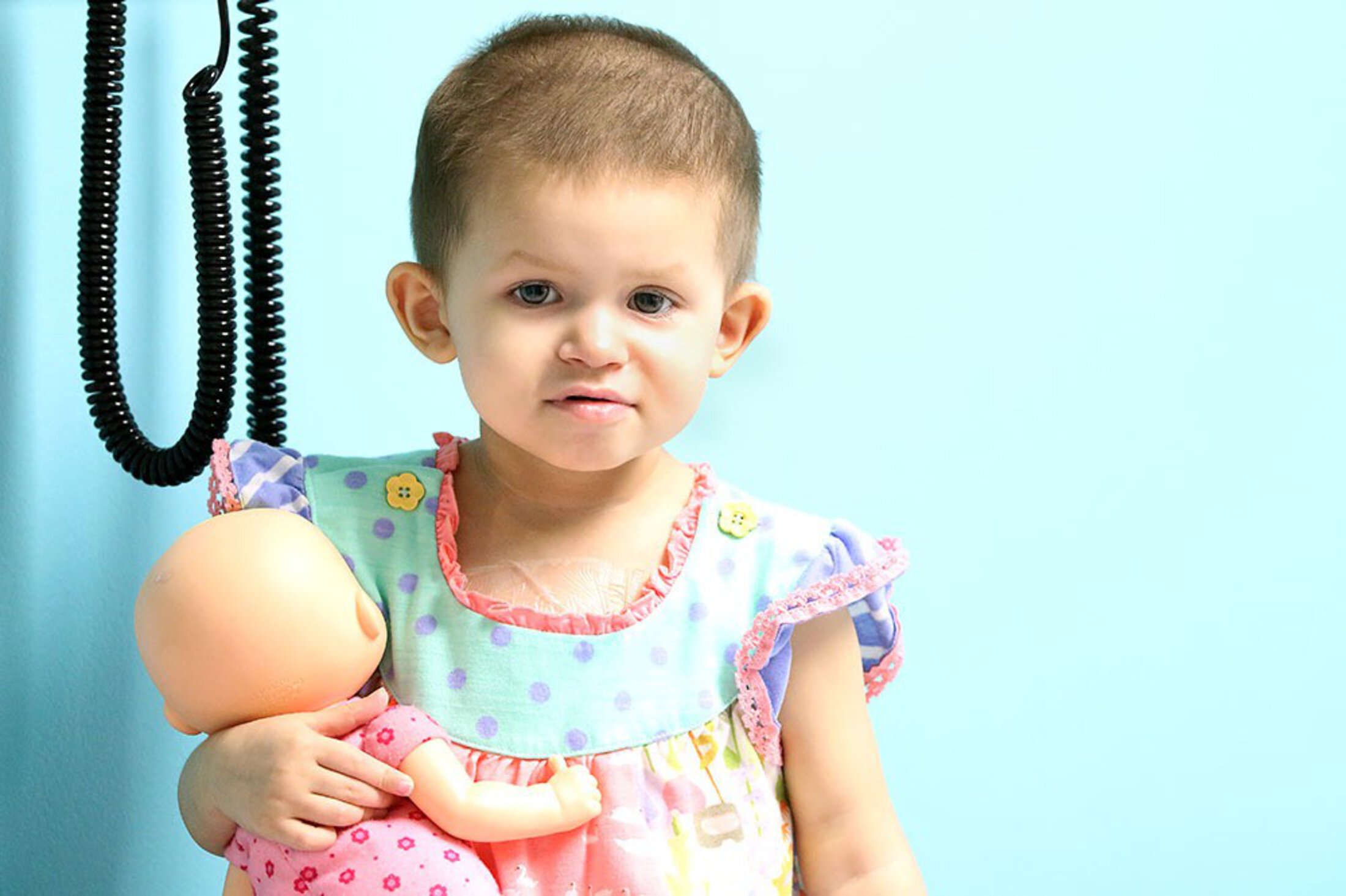Her mother, Jessica Thompson, says Victoria developed a volleyball-size tumor on her kidney last year. Today, after a series of innovative treatments, Victoria’s tummy is back to normal toddler size. “This child’s a trouper, really strong. You’d hardly even know she’s sick,” Thompson says.