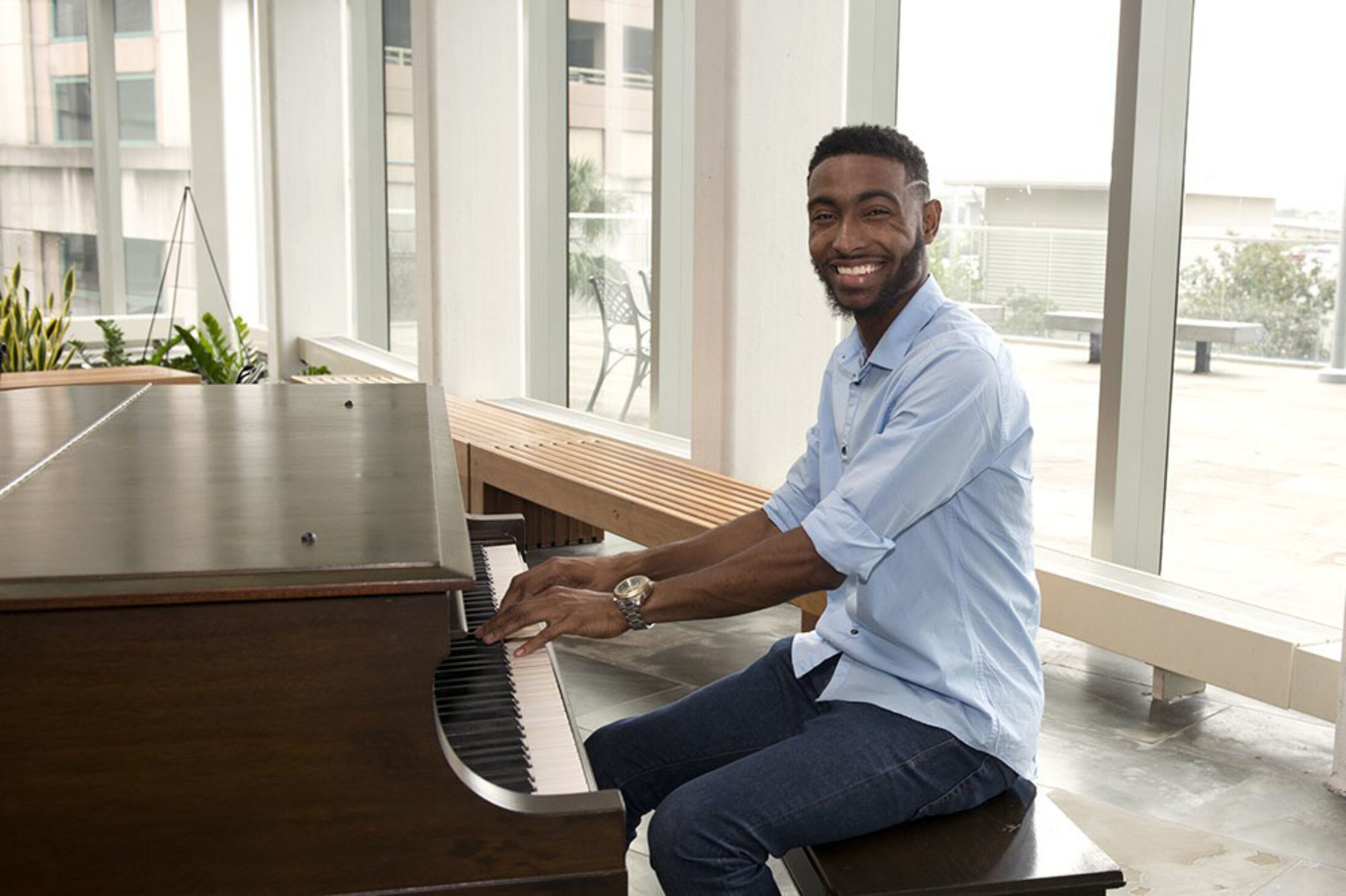 Jakarl Frasier, a composer who taught himself how to play the piano by watching tutorials on YouTube, now plays so beautifully that within a ten-minute window, two strangers stop to videotape him in the Ashley River Tower at the Medical University of South Carolina.