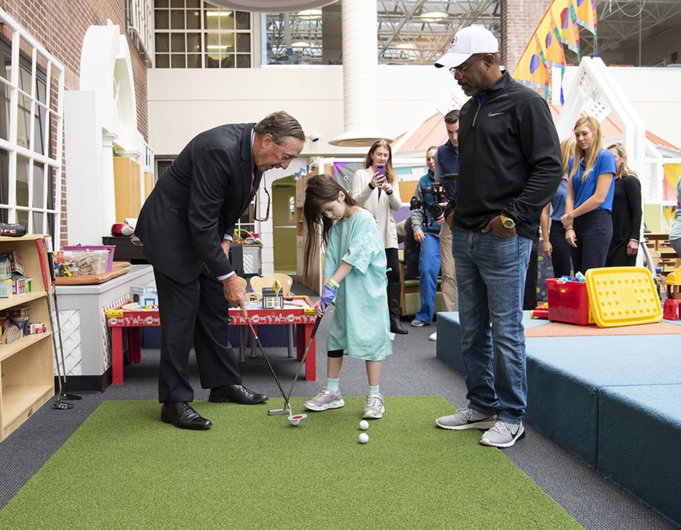 The Atrium play area in MUSC Children’s Health included a temporary putting green this morning as leaders announced new links between MUSC and the United States Golf Association.