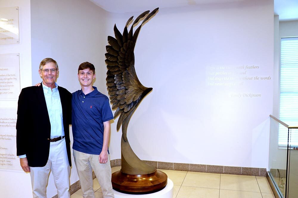 In the lobby of Hollings Cancer Center is a giant sculpture of a wing. The artwork by Grainger McKoy is called “Recovery Stroke.” It’s a place Hagood, who responded well to his transplant, knew he wanted to go if and when he ever got to meet and thank Hayes.