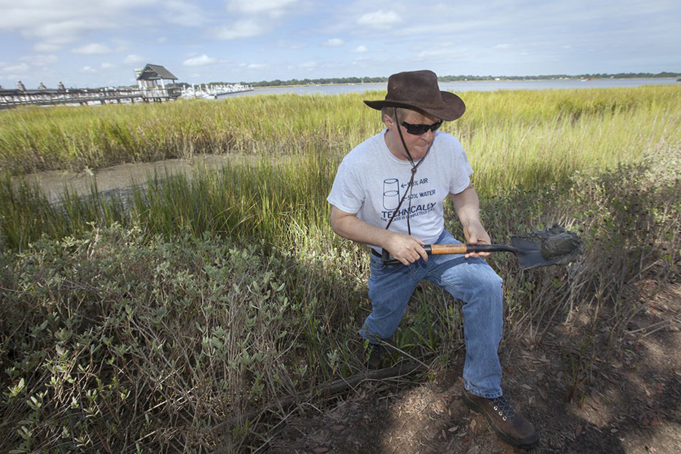 He recently returned to the Charleston riverbank where his original pluff mud sample came from and marveled at what it led to. “The cool thing about this is that it’s gone all the way from here, to all that lab work, to now back out to places like here where we can actually use it. This is what it’s about in the end.”