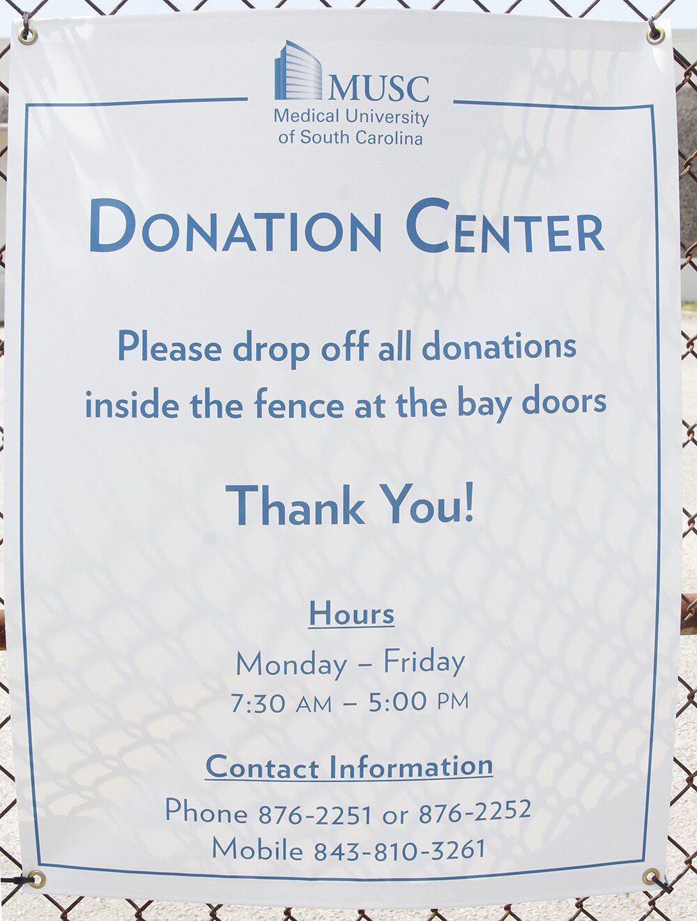The public can donate at the collection site located at 4295 Arco Lane in North Charleston. It’s open weekdays. You can find the complete list of general and pharmaceutical supplies needed on the COVID-19 donation information page. It’s important to note that MUSC Health has to verify certain types of supplies as sterile to able to use them.