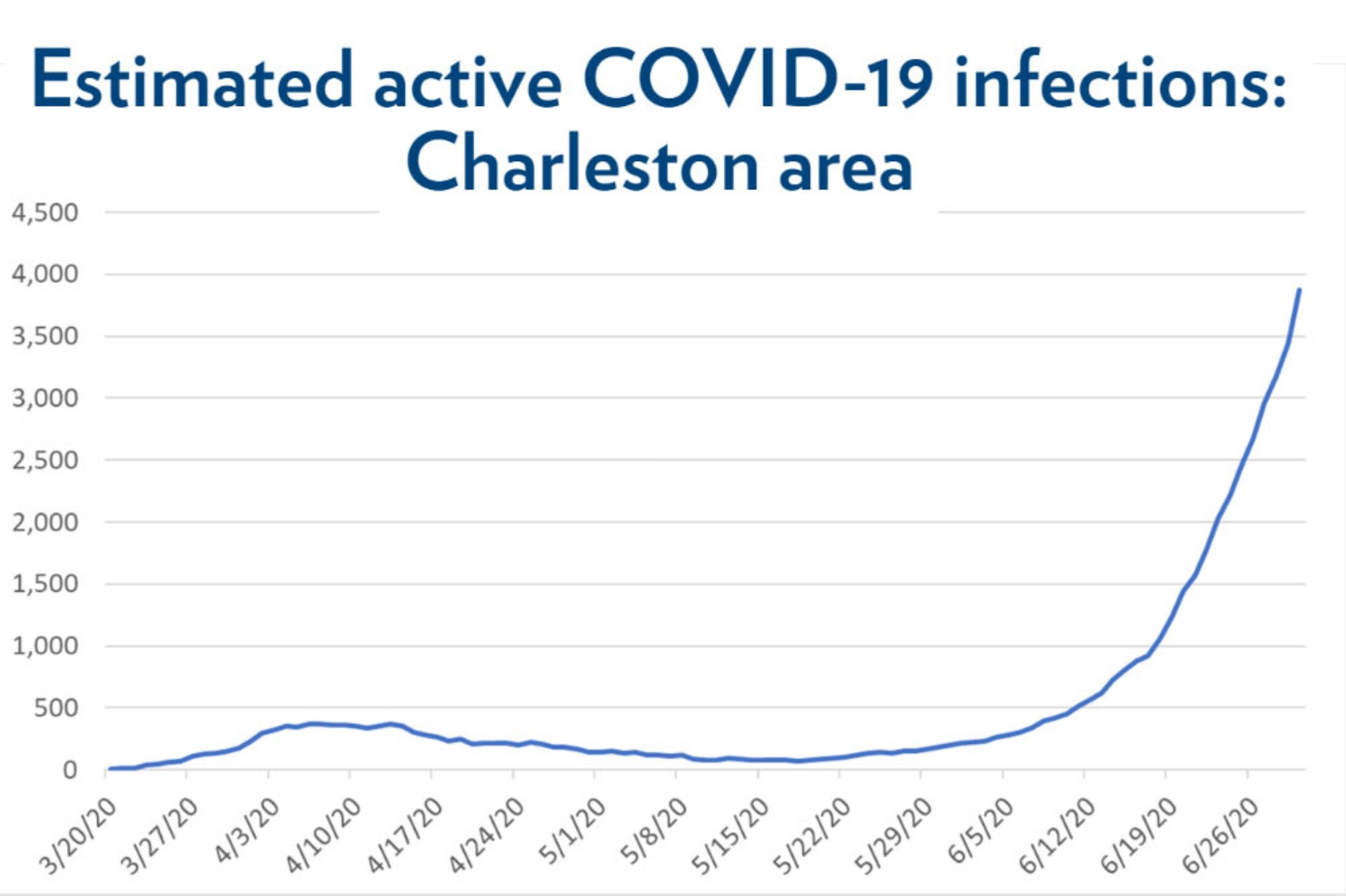 “About 74% of all infections in the Charleston area since the pandemic started have been diagnosed since mid-June,” Sweat said. “It’s rapid, explosive growth. Of the 6,171 total cases in the Tri-county area as of July 1, 4,547 have been since mid-June.”