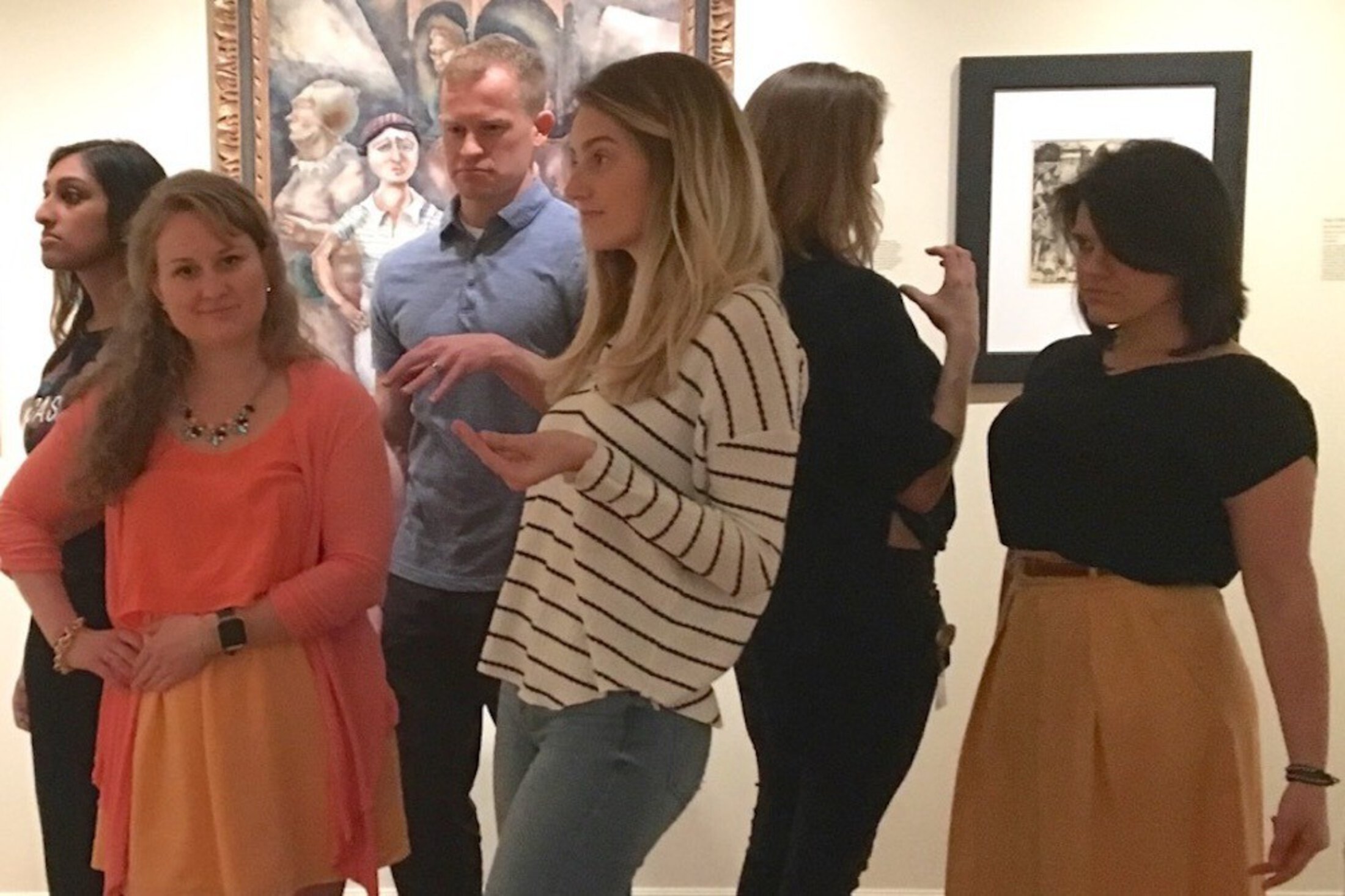 In one activity, students from two groups, each having discussed a different piece of art, are asked to assume the persona of a figure depicted in their artwork and to engage in dialogue. Students and museum educators then score body language using a nonverbal checklist.