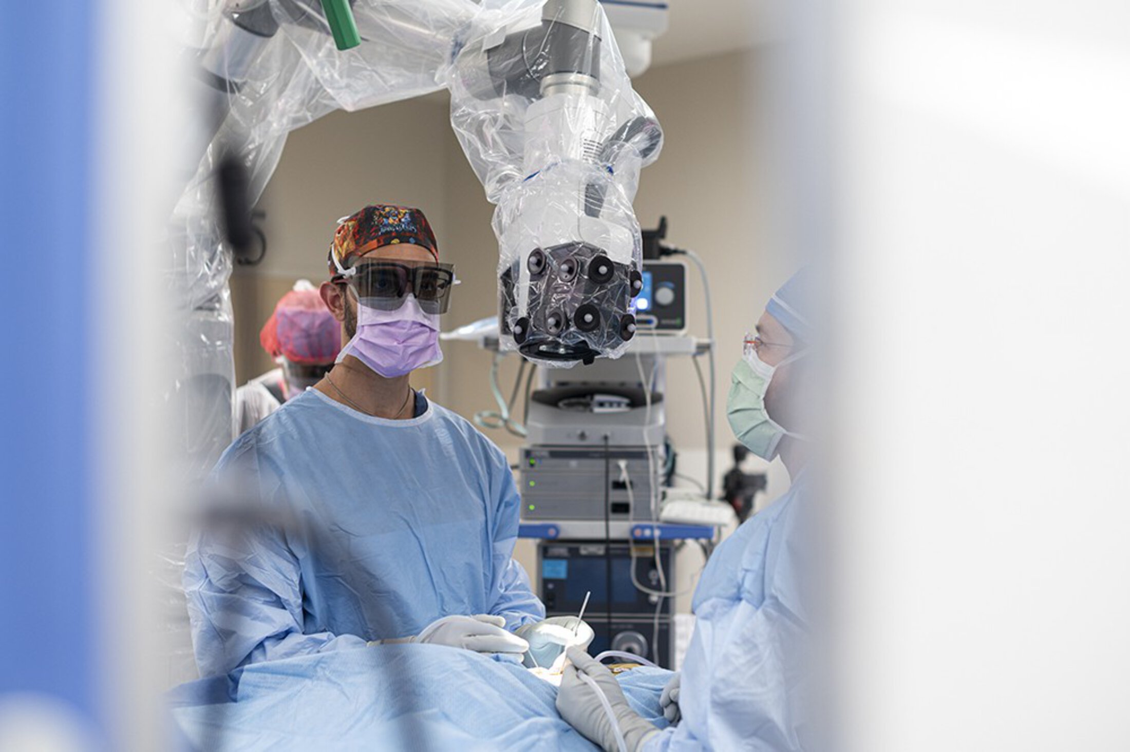 Dr. Eskandari uses the 3D view on the screen during surgery.
