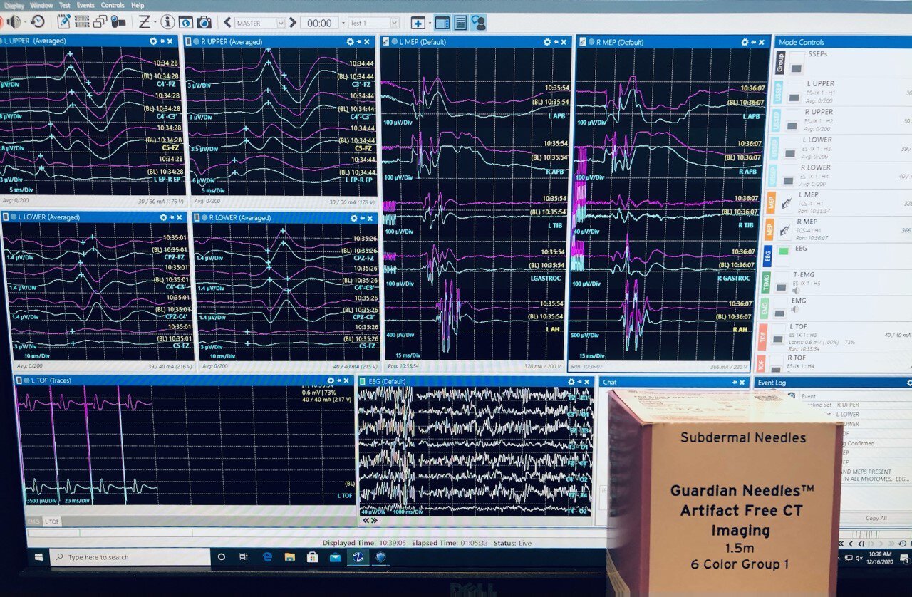 Intraoperative neuromonitoring provides valuable information to safeguard the patient’s neurological functions, but it’s not without risk to the team in the operating room. Traditional needles are held in place by tape, and they can pop out of position and stick team members as they maneuver themselves or the patient during surgery.