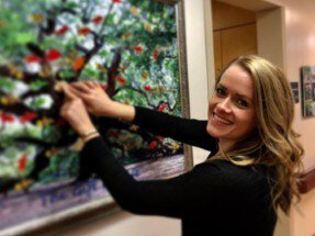 Lilian Jarvinen places her leaf on the Gift of Life Tree at MUSC Health 6 East.