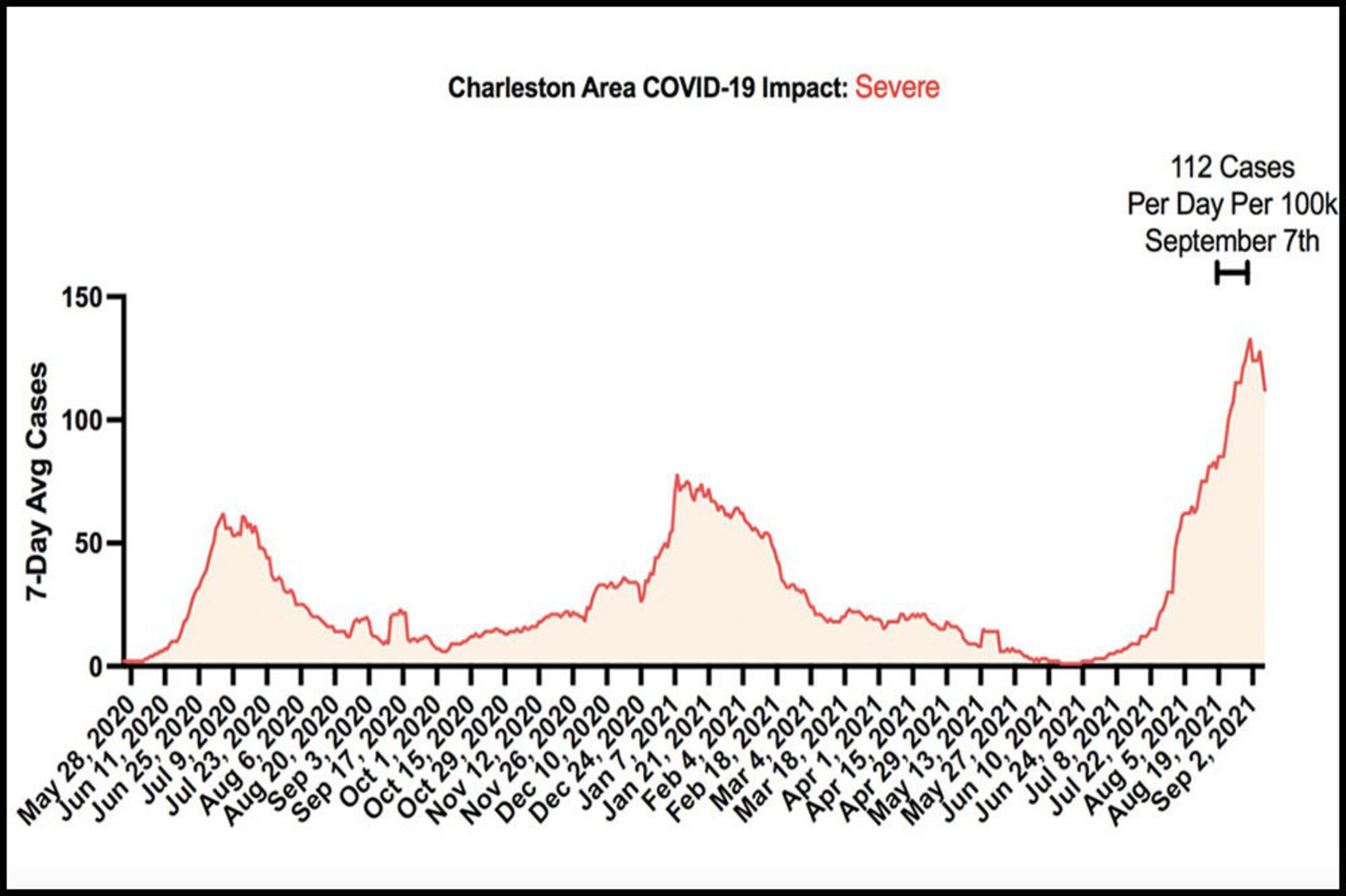After more than two months of worrying weekly updates for the Charleston Tri-county area, the Medical University of South Carolina’s COVID tracking team reports the seven-day average of new infections has gone down 3%. It’s a small but welcome decline as hospital systems, including MUSC Health, are treating what’s been called an unprecedented spike in COVID patients.