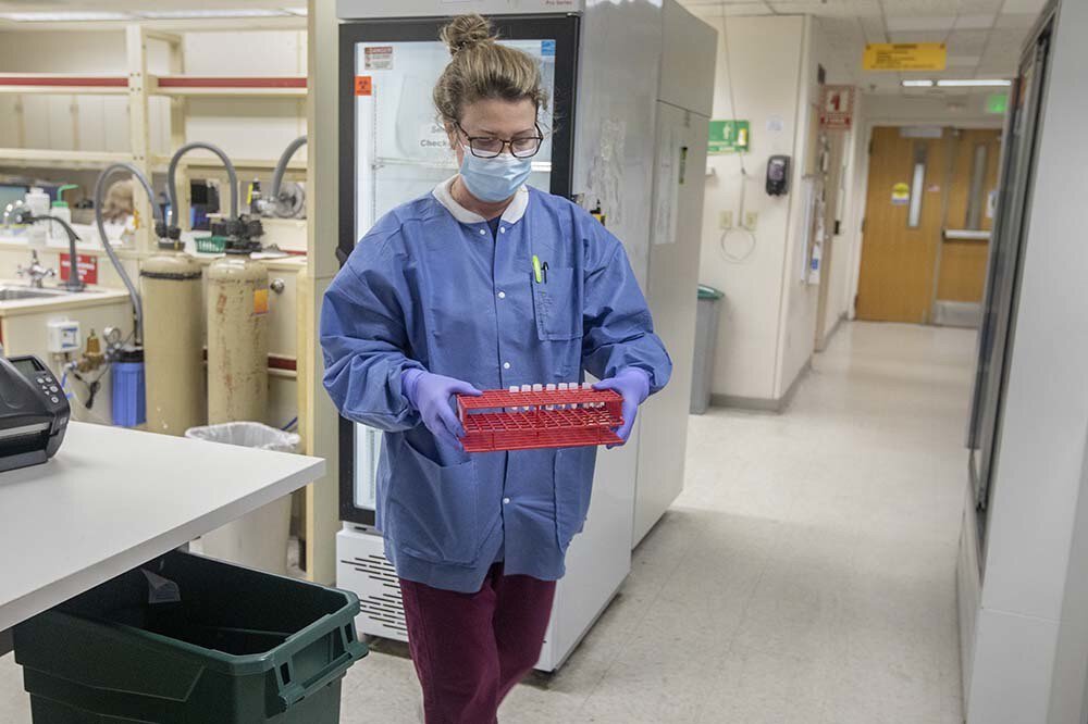 But technicians are careful to confirm the names and dates of birth before a specimen goes into a testing machine. They’re well aware of both public concern about the speed of results – and the need to be precise. Technician Betsy McLaughlin said she and her colleagues do everything they can to get those results out as quickly as possible. “I think people don’t know the whole ins and outs of testing and this particular type of testing. PCR takes a while. This is the gold standard.”
