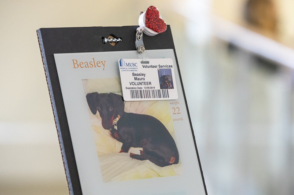 Mauro has spent more than three years visiting with patients, but she’s always been accompanied by her miniature dachshund, Beasley. She and Beasley were part of the pet therapy team, and they volunteered at both MUSC Health and Roper St. Francis. At MUSC Health, they devoted a lot of their time to sitting with cancer patients receiving infusions. Beasley was even honored as a Health Care Hero in 2020.