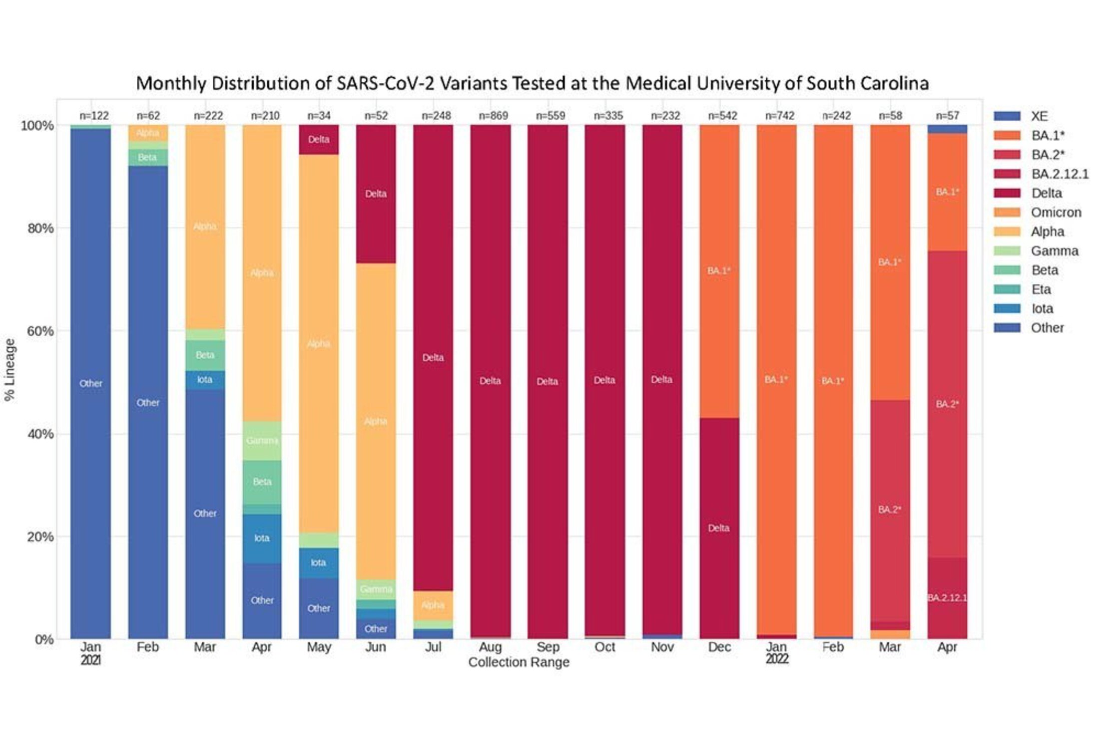 Newly released COVID data from the Medical University of South Carolina show the Omicron subvariant BA.2 and its fast-spreading offshoot, BA.2.12.1, are on the rise.