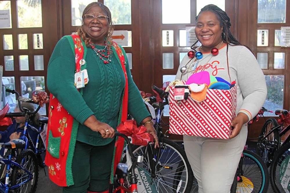 As the parade concluded, participants joined students and health care workers on the Greenway. Dozens of bikes sat next to numerous bags of toys and clothes. Multiple box trucks and lots of help was needed to pack everything up for the Salvation Army. As the trucks were packed full of toys, Santa took a seat and took note of the wishes of each child in attendance; the surest sign that the holidays are here.