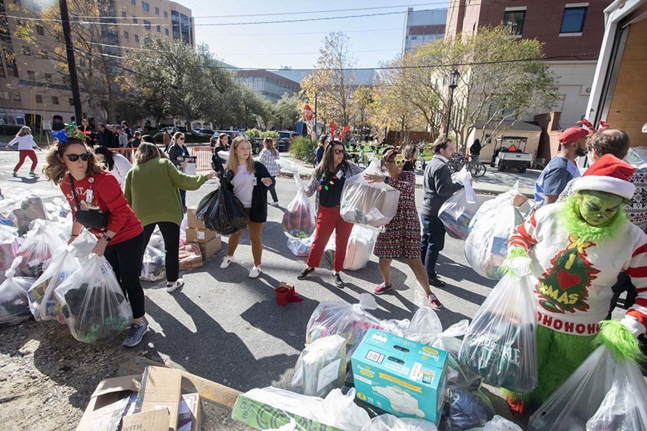 For the first time since 2019, there were bagpipes on Bee Street, peppermints on President Street and Santa Claus himself rode down Calhoun Street. The MUSC Angel Tree Parade of Toys returned from its two-year hiatus on Friday, with MUSC President David Cole, M.D., atop the leading float. The parade not only signified the start of the holiday season, but also a return to normalcy for the MUSC community.