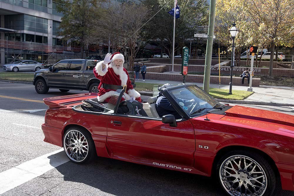 Behind Cole in the parade were canine companions from MUSC’s therapy dog program. They were followed by several groups from the Omar Shriners, MUSC’s newest partner. The Coastal Belle singers provided Christmas carols throughout the parade around MUSC’s campus ahead of the big man himself, Santa Claus, who closed out the parade in a red convertible Mustang.