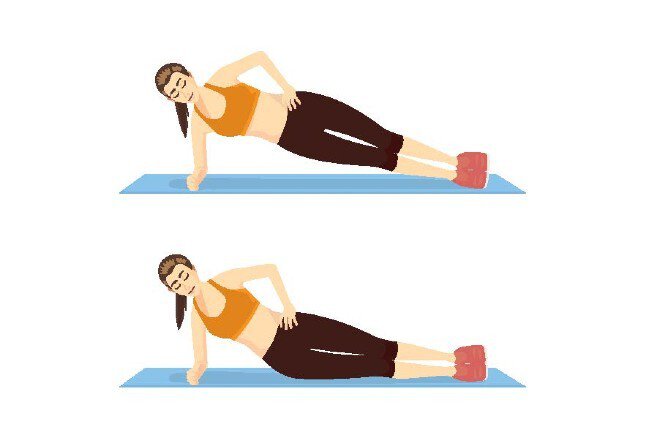 - Switch to the left side. “The key is to have your hips and shoulders in a straight line. Don’t let gravity take over and pull your shoulders and hips down to the ground,” Sole says.