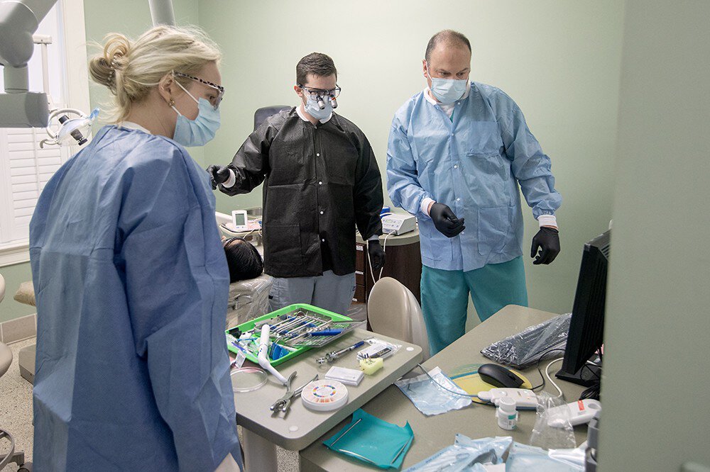 During the Jan. 13 dental clinic, the endodontics team treated 23 patients from 8 a.m. to 5 p.m., with a team that consists of six endodontic residents; two third-year dental students, who are volunteer dental assistants; Ravenel, the faculty preceptor; and dental assistant/endodontics program coordinator Vanessa Chapin.