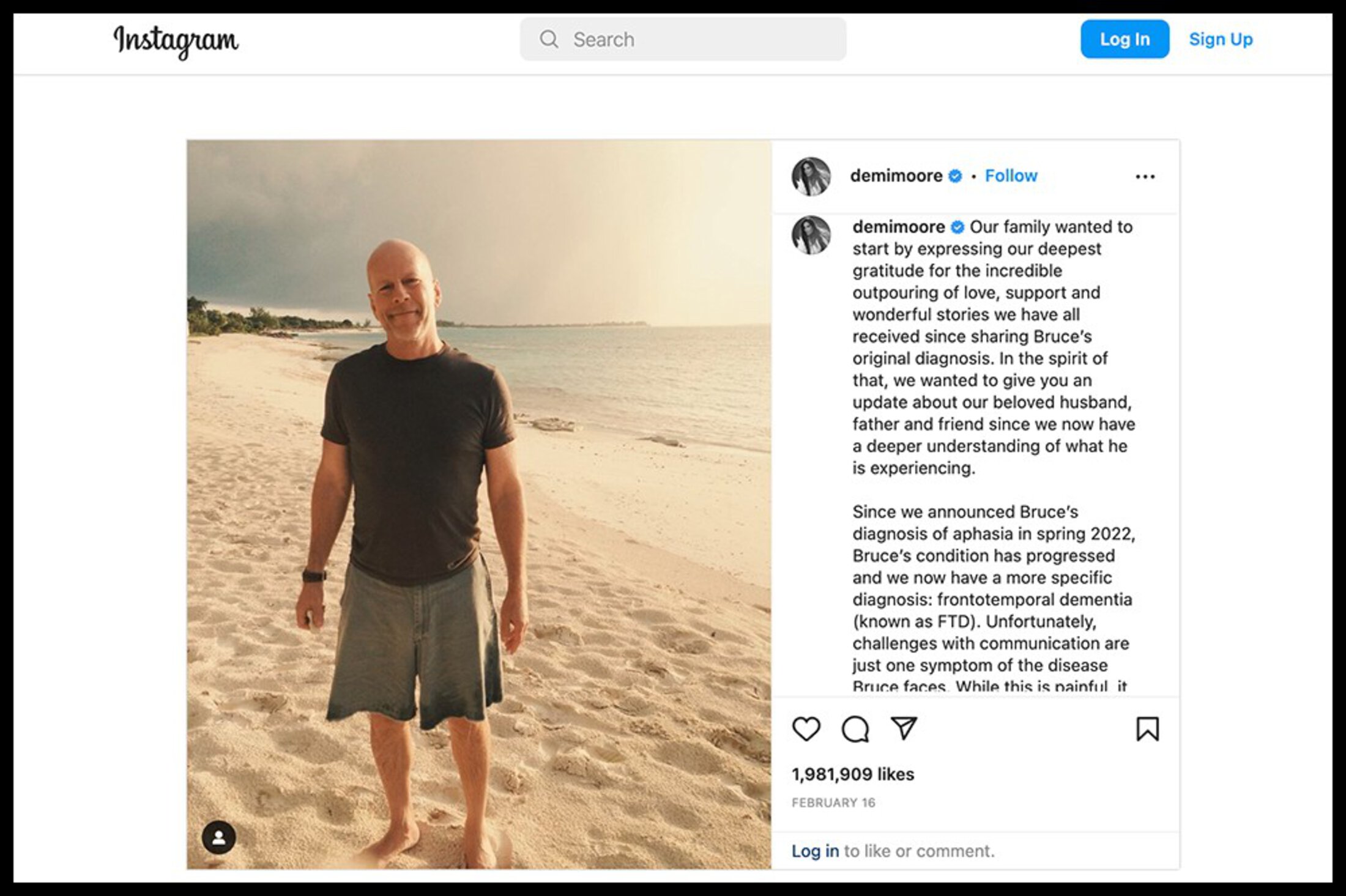 Willis, 67, has frontotemporal dementia. It’s a rare condition that usually shows up earlier than other forms of dementia.