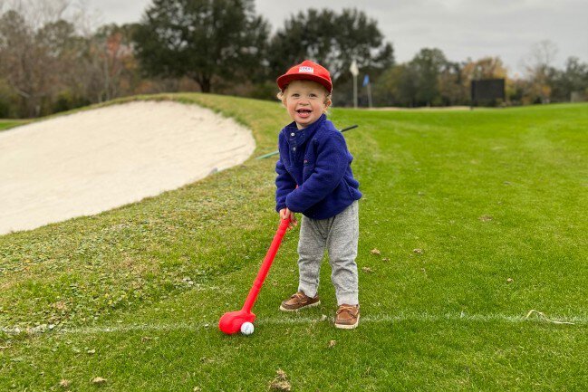 Jack today, says mom Caitlin Townes, is a “curly haired blond wild boy, all boy” and like his father, enjoys playing golf.