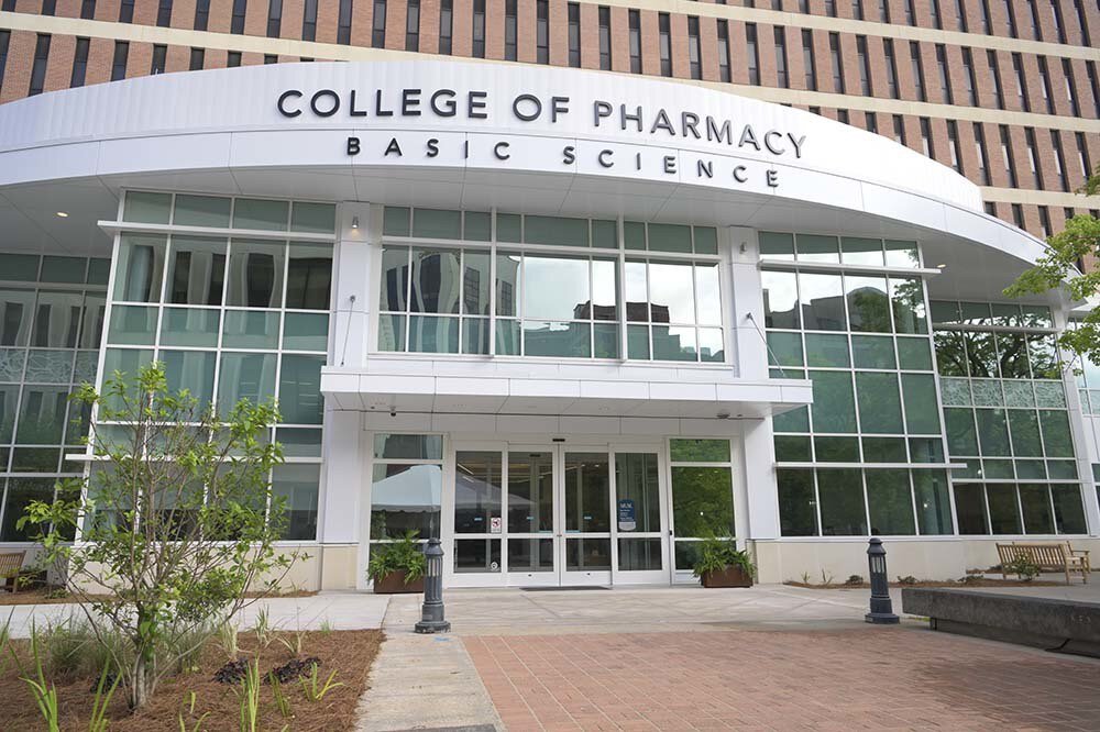 Provost Lisa Saladin, Ph.D., described how it became part of that prime location. “The College of Pharmacy is two floors added to our Basic Sciences Building to give the College of Pharmacy a new home that was desperately needed, since their old building was built in 1939.”