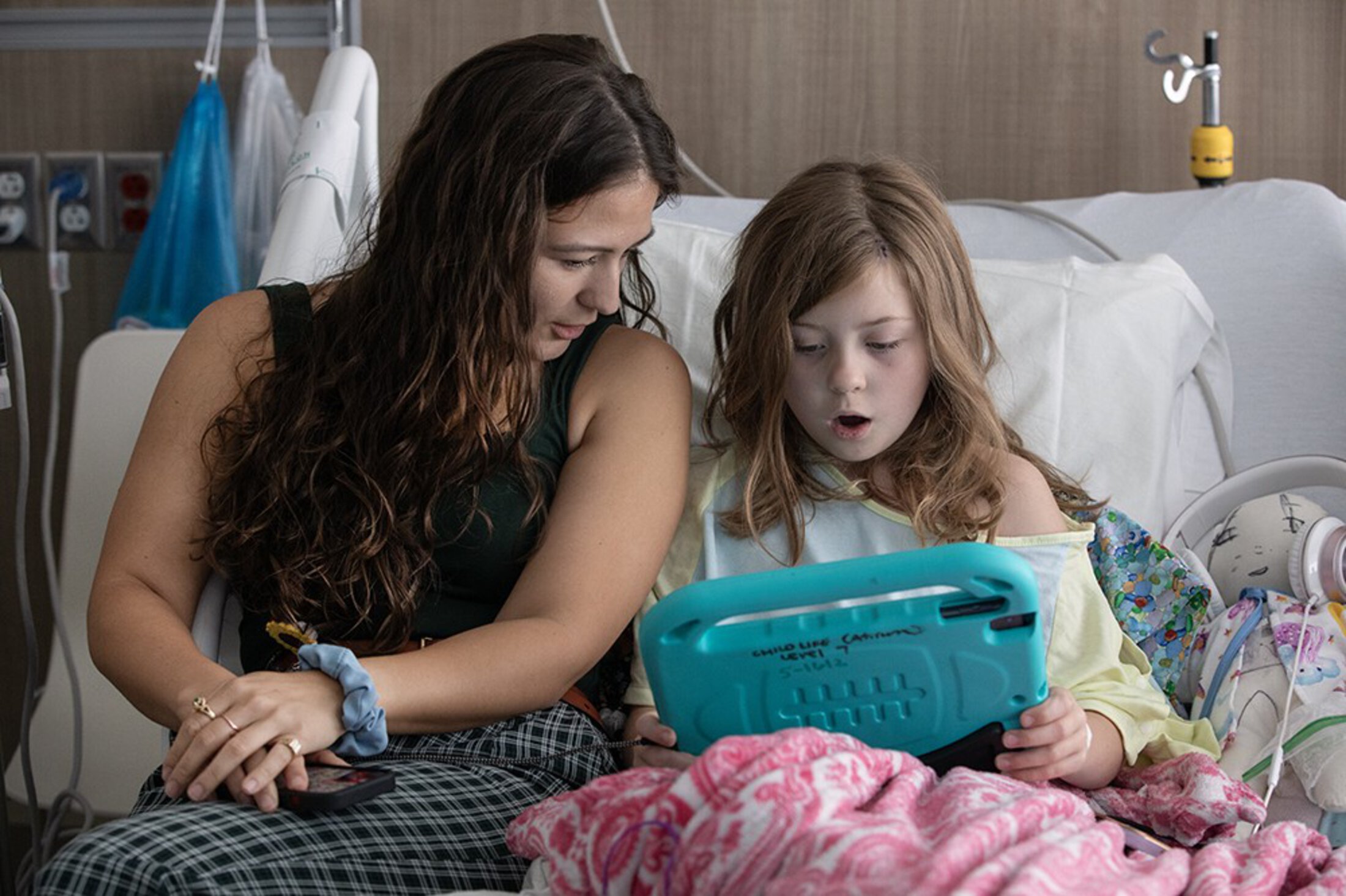 An adorable 8-year-old girl lying in a bed in the MUSC Shawn Jenkins Children’s Hospital is happy to see medical student Kaila Martin come to visit – and things get even better when she finds out what they’ll do together.