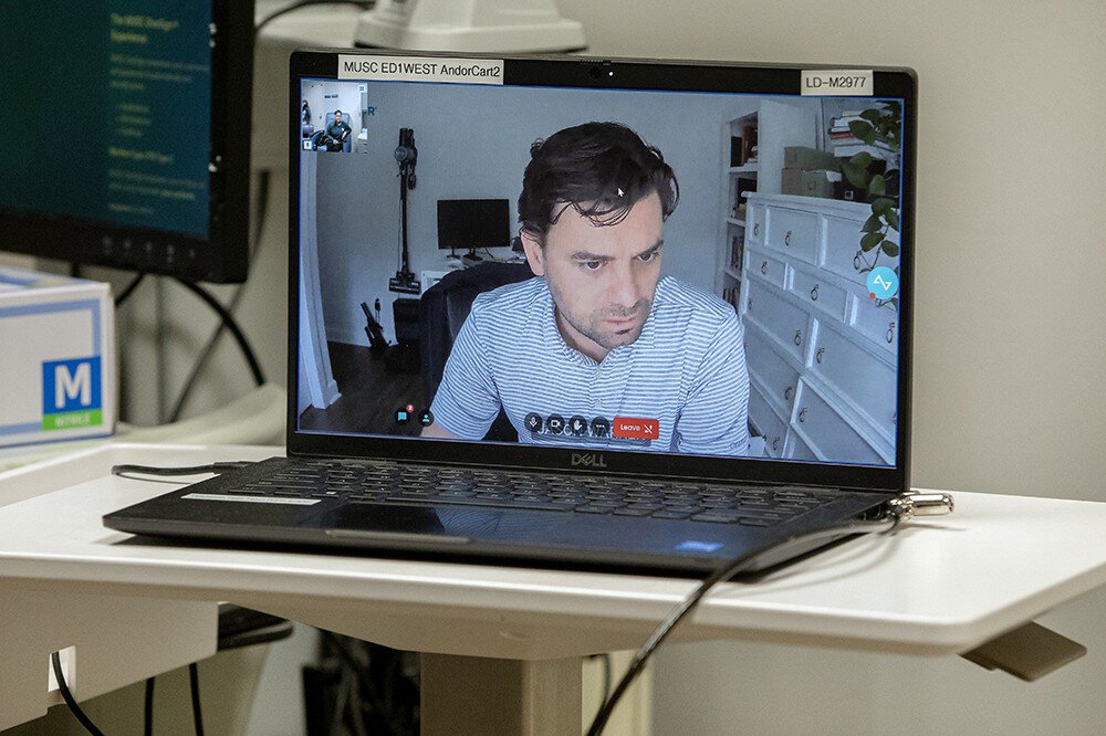 Marc T. Bartman, M.D., directs the Division of Emergency Medicine Telehealth at the Medical University of South Carolina. He described how the new addition works in both the University Hospital’s and Ashley River Tower’s emergency departments.