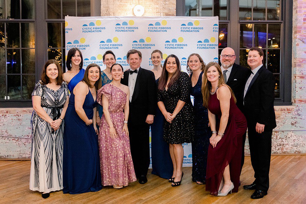 Members of the MUSC cystic fibrosis team (L-R): Sue Gray, R.N.; Sara Hendrix; Christina Mingora, M.D.; Lillian Christon, Ph.D.; Sylvia Szentpetery, M.D.; Patrick Flume, M.D.; Kimberly Foil; Suzanne Mondello; Wendy Moore Bullington, Pharm.D.; Brandie Taylor; Wayne Barfield; and Brian Daigle, R.N. Photograph by Candice Adelle Photography.