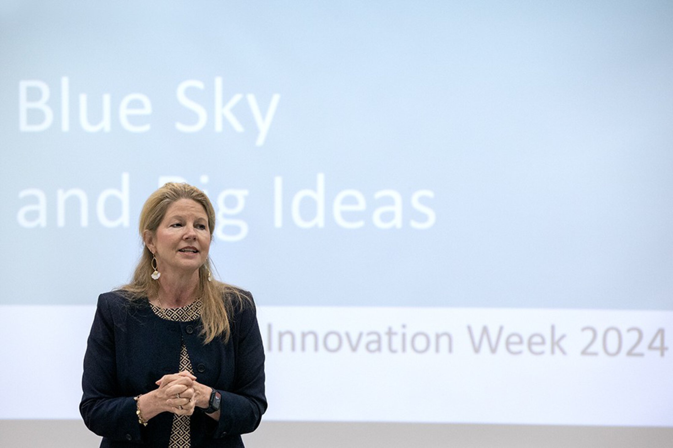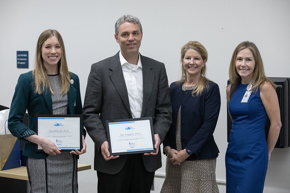 From left to right: Blue Sky Award winners Dr. Sara Witcraft and Dr. Kenneth Ruggiero; Vice President for Research Dr. Lori McMahon; and Chief Innovation Officer Dr. Jesse Goodwin.