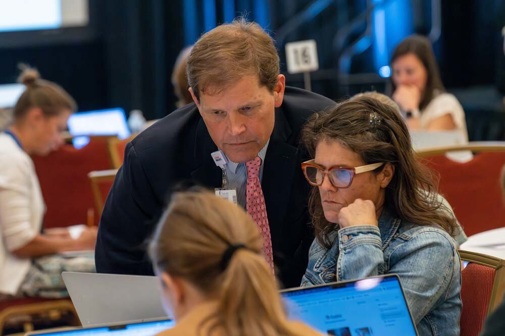 Thomas G. Smith, Ph.D., reviews Microsoft Copilot’s response to workshop prompt with Kimberly Kascak.