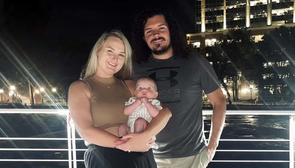 Rowan Cooley with his parents, Kayla Read and Brandon Cooley.