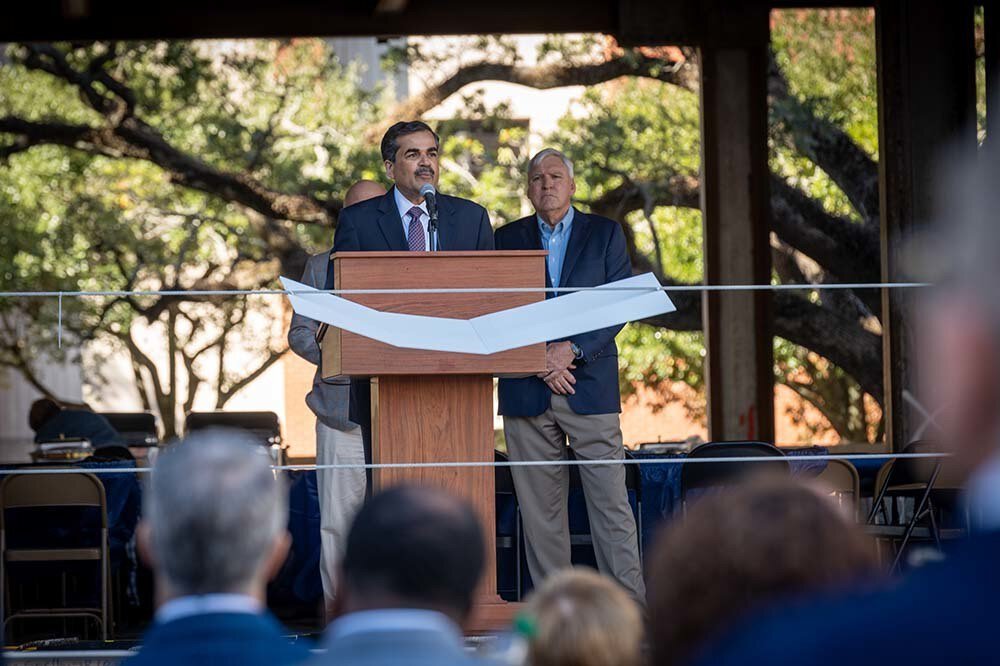 Dr. Zoher Kapasi speaks at the topping out ceremony on President Street. Photo by Jonathan Coultas