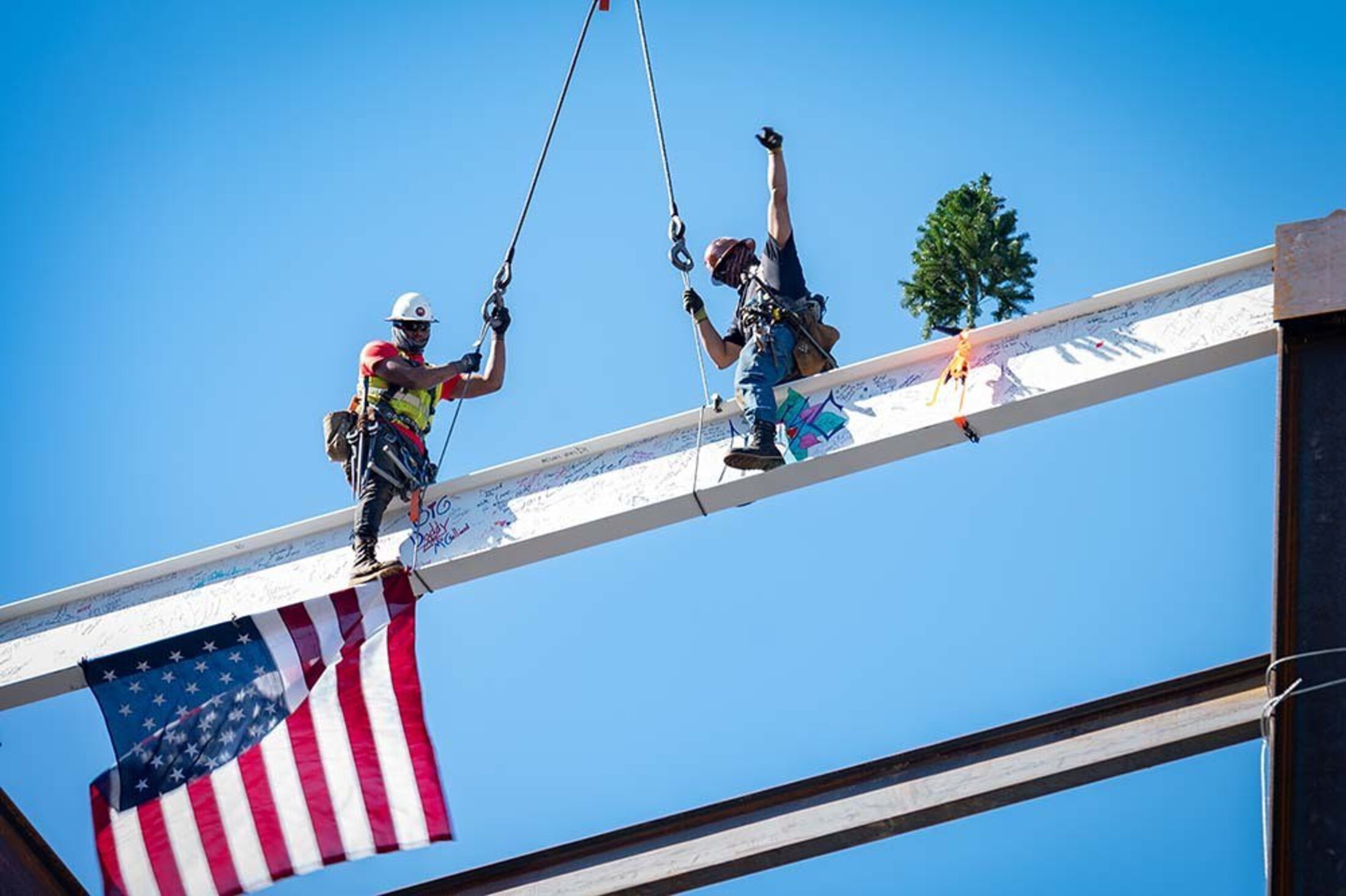 Harris and Yon applauded with the rest of the crowd gathered to celebrate the topping out, watching construction workers secure the beam on a cool October morning. While there’s still plenty of work to go, it was a clear signal that progress was being made to support the largest college on campus in terms of student enrollment.