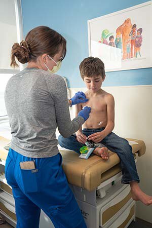 Nurse Landry Davis with Jaxson during a recent checkup. Photo by Julie Taylor.