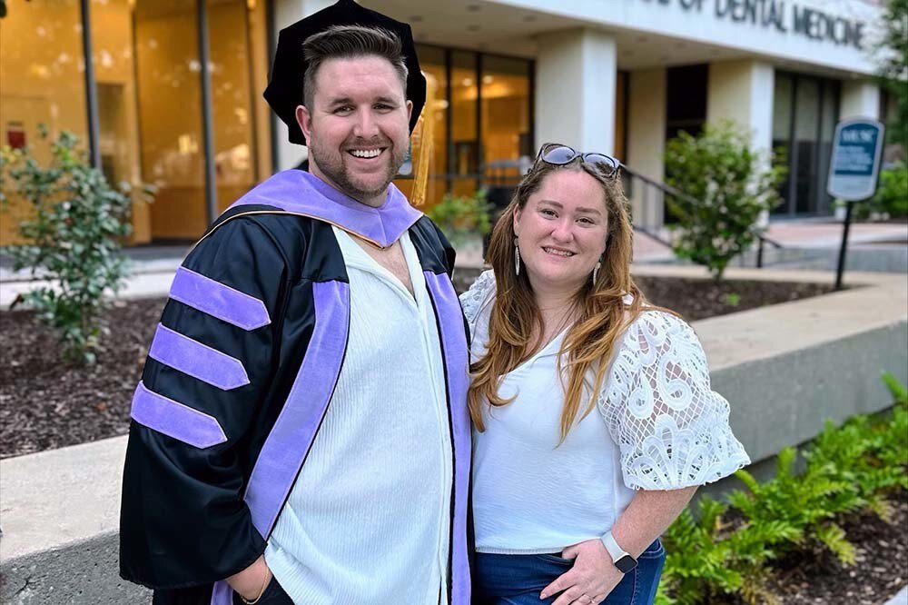 Jesse Raybon with his wife, Ivey, in front of the College of Dental Medicine.