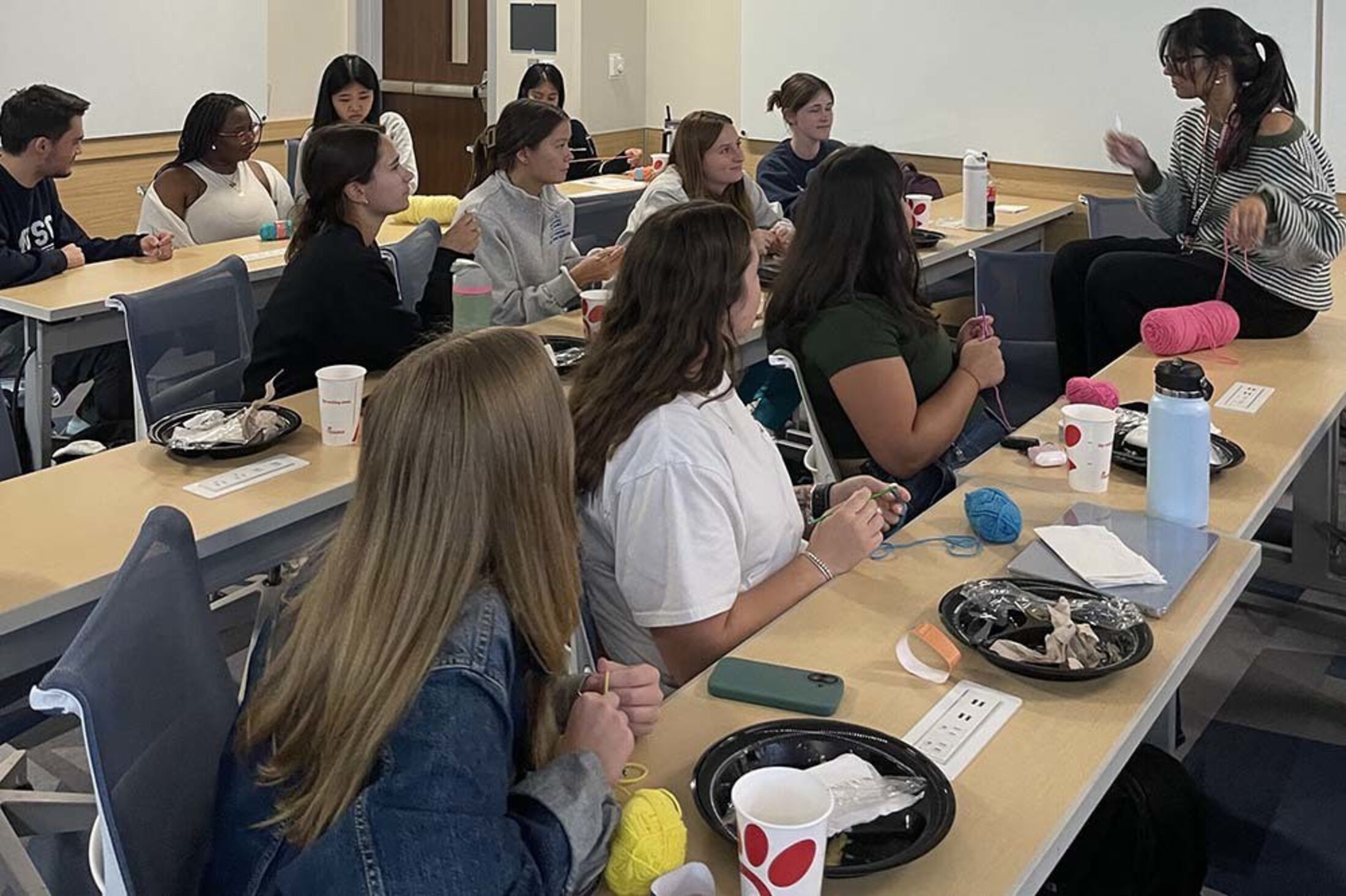 Menon agrees. “I think it’s why we picked up the hobby when we did,” she said. “I would see Gloria crocheting during lectures, and I found working with my hands very calming. A few of us enjoyed it and said, “Let’s just start a club.’”