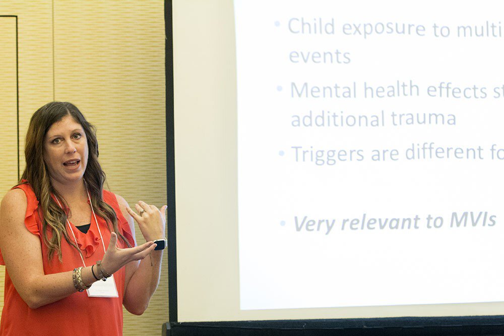 Angela Moreland, an assistant professor in the Department of Psychiatry and Behavioral Sciences and College of Medicine and part of the NCVC team, talked to her group about the impact of mass violence on children.