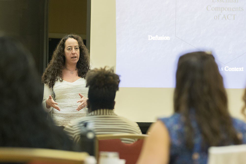 “It’s sort of a shift beyond cognitive behavioral therapy,” Rheingold told an audience made up of mental health professionals. While CBT focuses helping people change their though patterns or behavior to improve the way they feel, ACT takes a different approach.