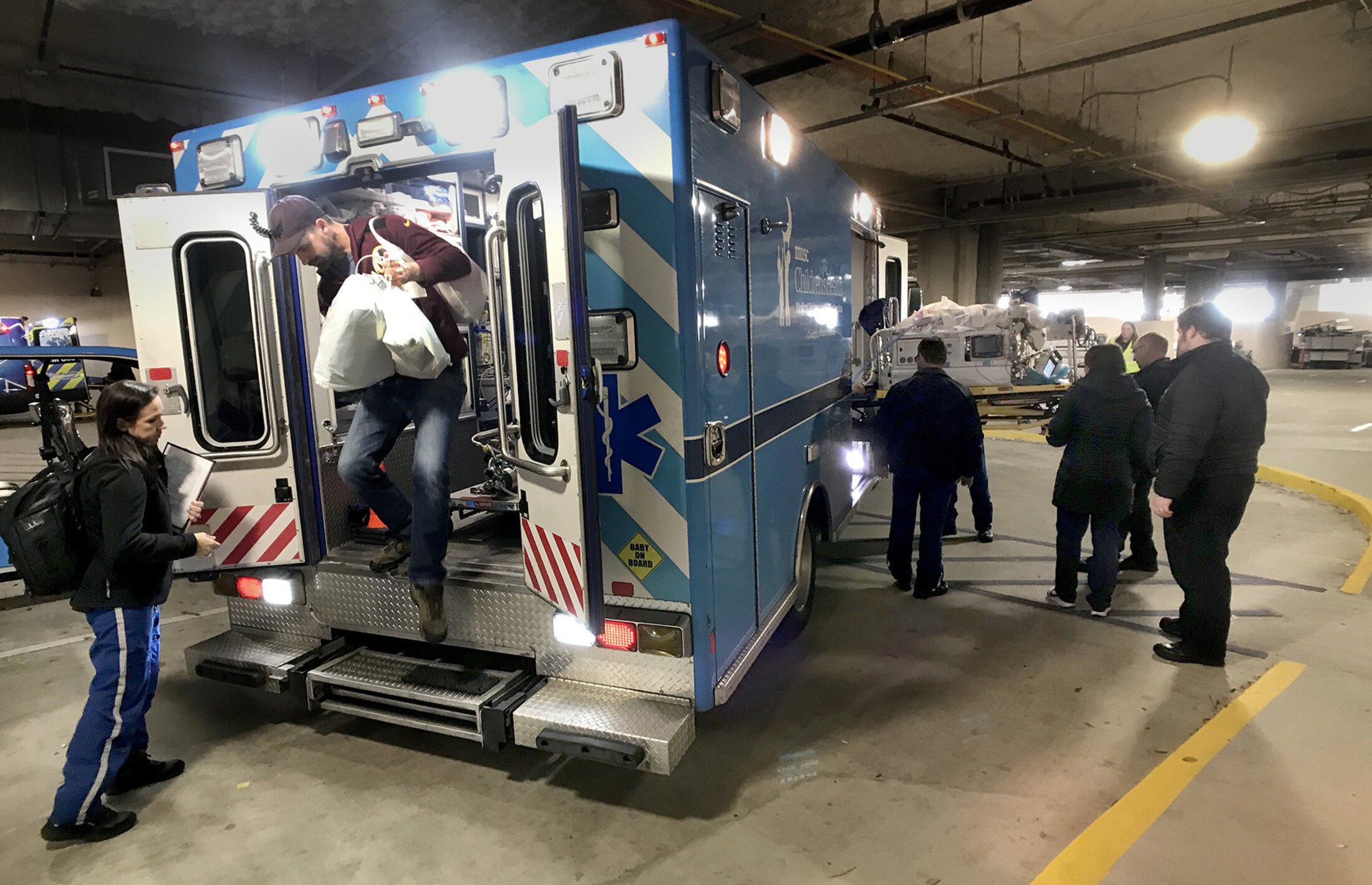 At 10:02 a.m., the green light was finally given to Easton, and his crew of eight wheeled him down the hall, into the elevator and out the front door, where a running ambulance was waiting. Once inside, the team drove south on Ashley Avenue – normally a one-way street going in the opposite direction, but today city officials shut the road down to public traffic – before making a right on Calhoun Street. Two quick turns later and they were entering the ambulance entrance under the new hospital. Outside the vehicle they were directed to another elevator. More movement, this time vertical. Doors open. Take a right. Another right. A left.