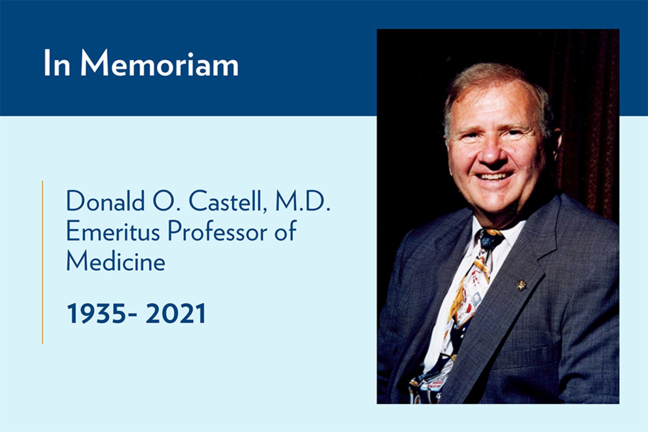 MUSC lost a valued colleague, researcher, and mentor on Jan. 9 with the death of Donald O. Castell, M.D., emeritus professor of medicine, and leader in the field of gastroenterology. He was 85 years old.