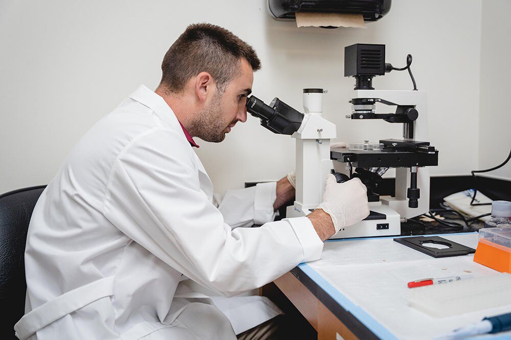 Andrew Jakymiw, Ph.D., who is also an associate professor in the Oral Health Sciences Department at MUSC, focuses on the study of RNA interference (RNAi)-based therapies for oral cancer. RNAi is a method of gene silencing that specifically targets, or tags, messenger RNA (mRNA) for degradation. mRNA contains the genetic code needed to make proteins. Small interfering RNA (siRNA) are the pieces of RNA that can bind to specific regions on mRNA that stop proteins from being made. Scientists are figuring out how to use this to target and silence disease-causing genes. Decades of research have shown that certain proteins are overexpressed in cancer and drive cancer cell growth. The goal of the RNAi drug treatment strategy is to “turn off” the proteins that promote cancer development.