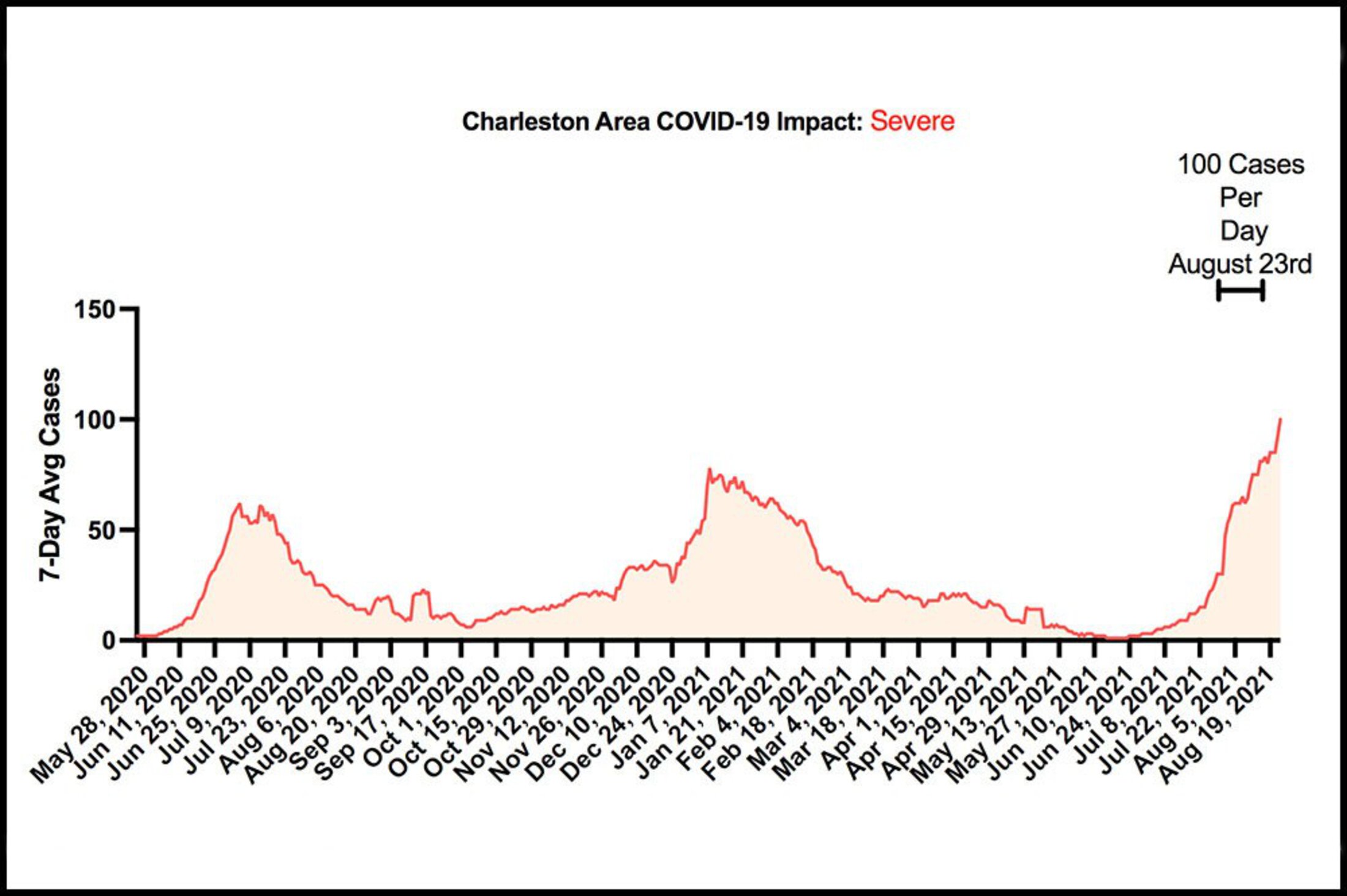 Sweat said earlier hotspots got up to between 100 and 200 cases per 100,000 people each day, then began to fall. He predicted cases in the Charleston area may continue to rise through Sept., then plunge in Oct.