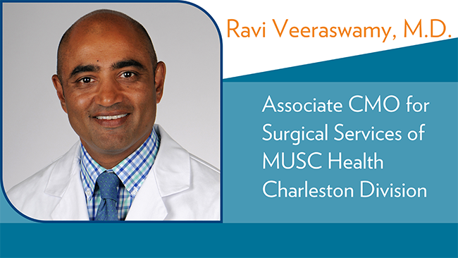 With the growth of the Charleston Division, MUSC Health has expanded its physician leadership structure. Carrie Herzke, M.D. MBA joins as the Charleston Division Chief Medical Officer (CMO) and Executive Director for MUHA. To help support the expanding team, Ravi Veeraswamy, M.D. joins a newly-appointed group of Associate Chief Medical Officers, serving as Associate CMO for Surgical Services of the Charleston Division.