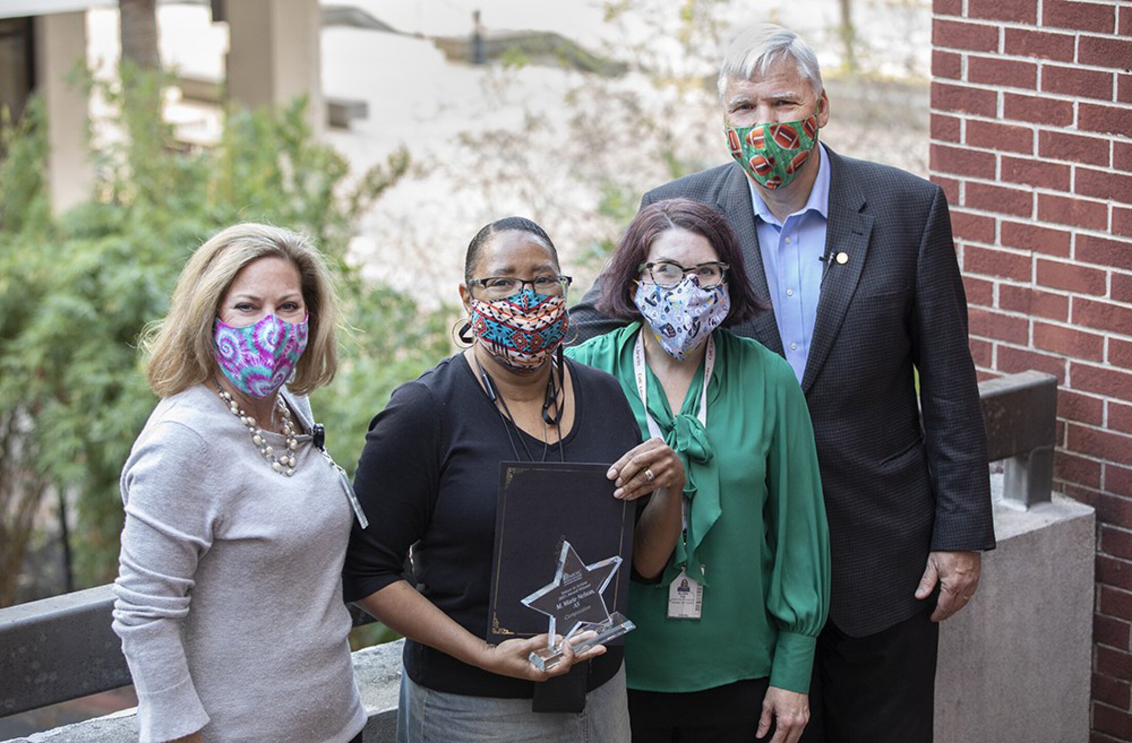 And as new library staff joined the ranks, Nelson gifted each of them with masks, lifting the spirits of her fellow colleagues. “The Values in Action award recognizes those, who through small acts, make significant contributions to MUSC. I believe Marie is deserving of this nomination for her ongoing service through a difficult time,” Fox wrote.