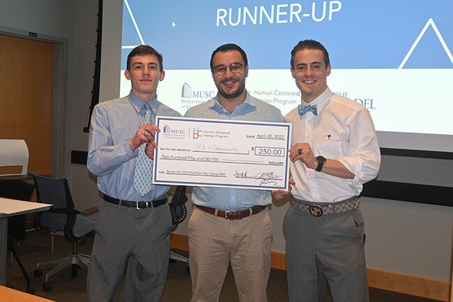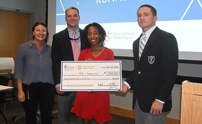This year also saw two teams tie for second place: the Young Roots Academy project, with team members Acacia Williams, MUSC Occupational Therapy student, and Chazton Jordan and Jackson Watson, both Citadel business students. The team for Compassionately was Amer Toutonji, an MD/PhD candidate at MUSC, and Ethan Philips and Thorin Cardente from the Citadel.