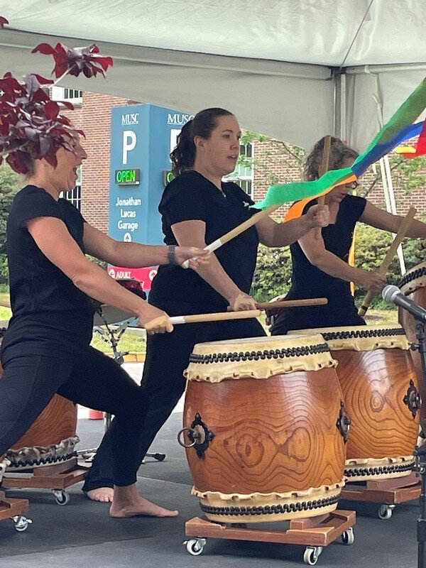 Jessica Belger, HR Assistant in the Department of Surgery, participated in the International Day Taiko Charleston drumming demonstration. Jessica and her husband have been part of the group for 9 years after seeing a flyer for a Japanese drumming interest workshop. They went to the workshop and were hooked! The group rehearses every week and performs across the low country at festivals, schools, and private events.