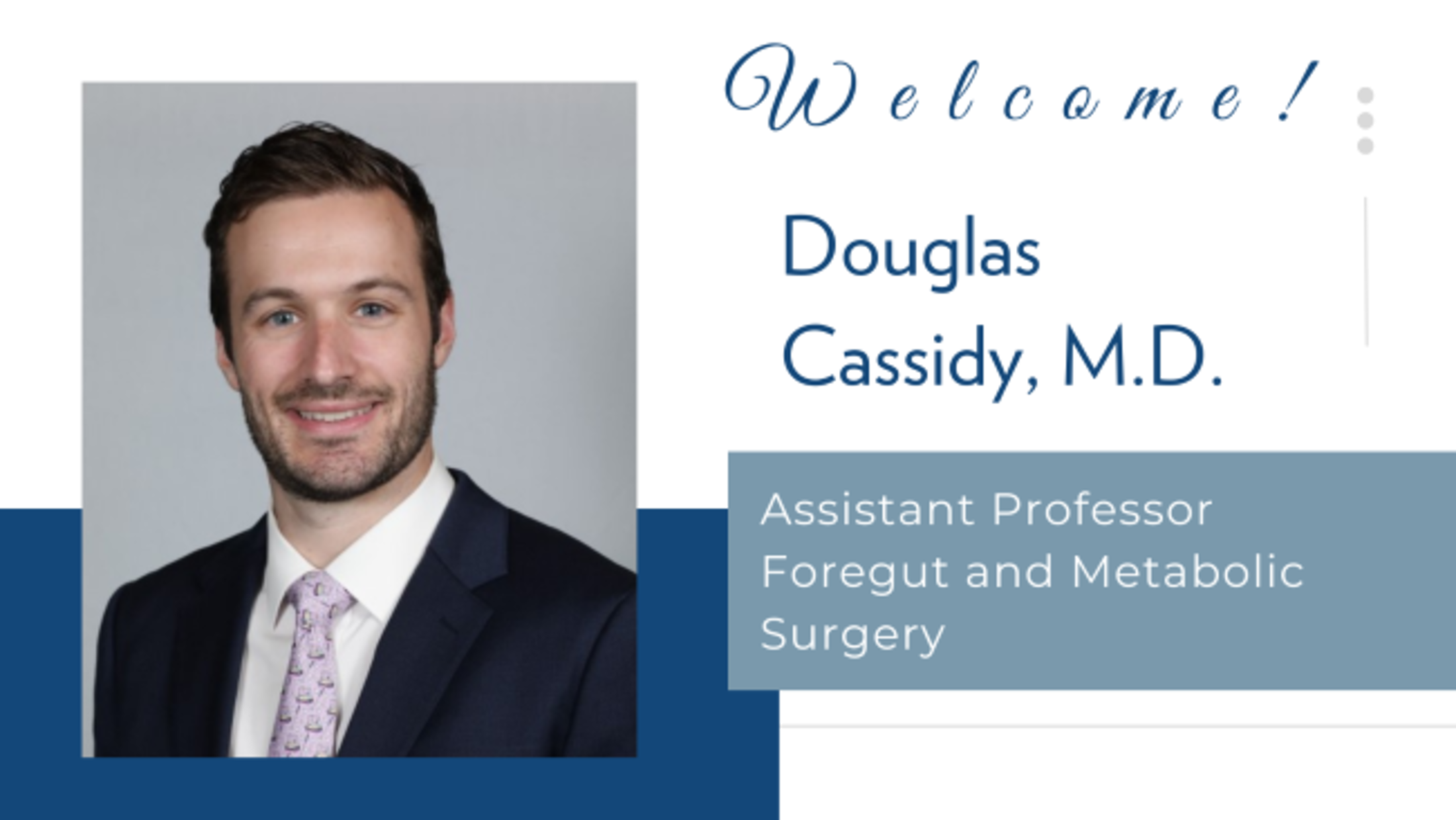 The MUSC Department of Surgery is excited to announce that Douglas Cassidy, M.D., has joined the Division of Foregut and Metabolic Surgery, where his expertise will help enhance the division’s clinical programs. Dr. Cassidy is a fellowship-trained minimally invasive surgeon specializing in laparoscopic, robotic, and endoscopic techniques for hernia and benign foregut surgery. He has clinical interests in abdominal wall reconstruction, hernia surgery, and foregut surgery, including gastroesophageal reflux disease (GERD), paraesophageal and hiatal hernias, achalasia, and gastroparesis.