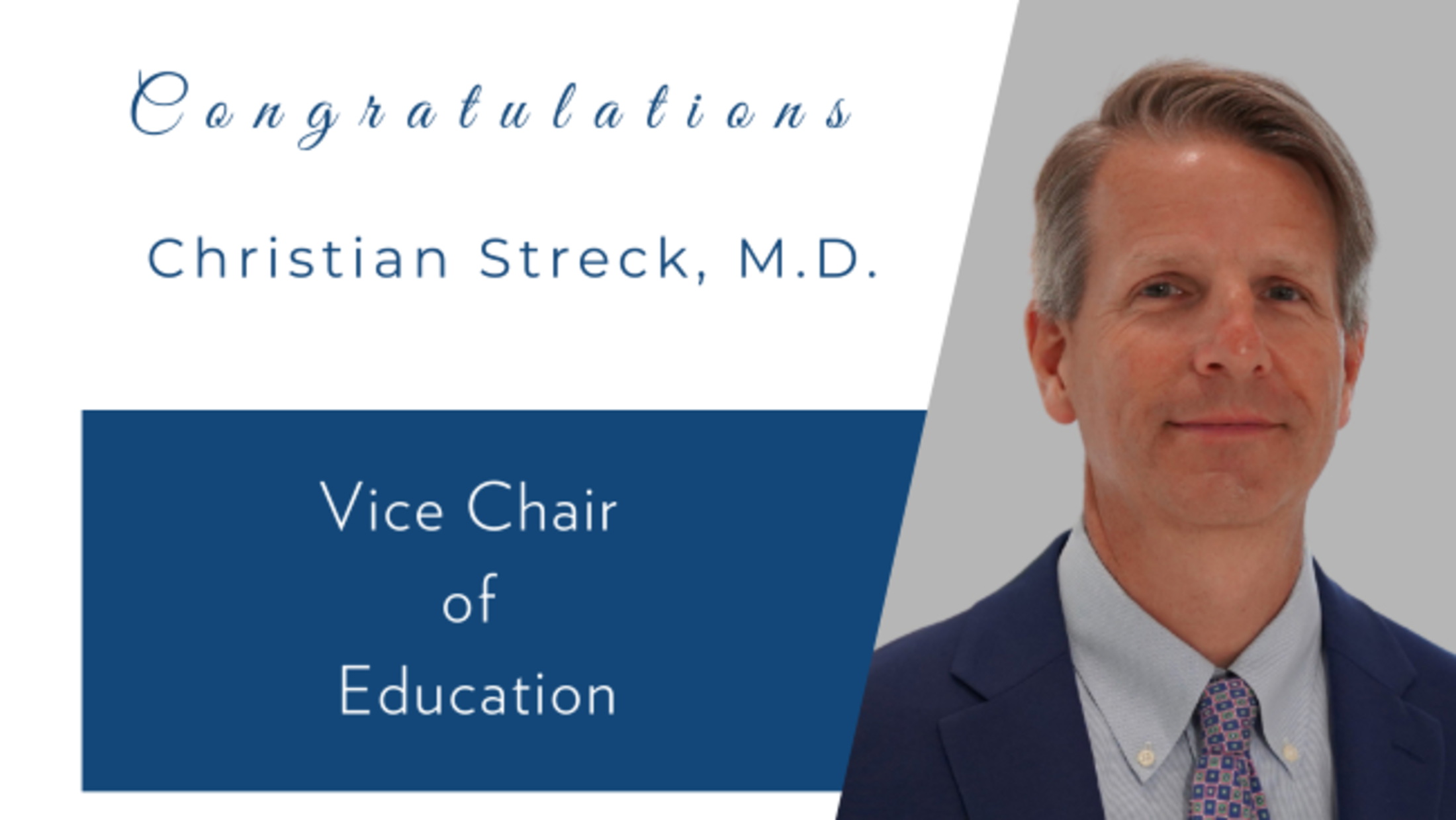 “Dr. Streck is a leader with a true passion for education and giving back to the next generation,” said Prabhakar Baliga, M.D., Chair of the Department of Surgery. “He is fair, pragmatic, and has strong integrity and values that he conveys in each of his decisions. I am most grateful to him for taking on this major responsibility.”
