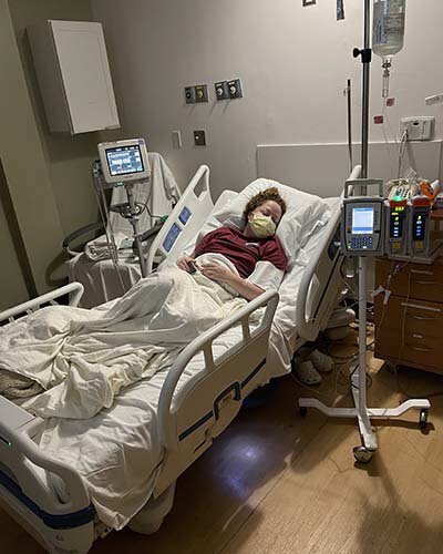 Lafferty's first night at MUSC Health in December 2021. She's under sedation receiving intravenous immunoglobin.