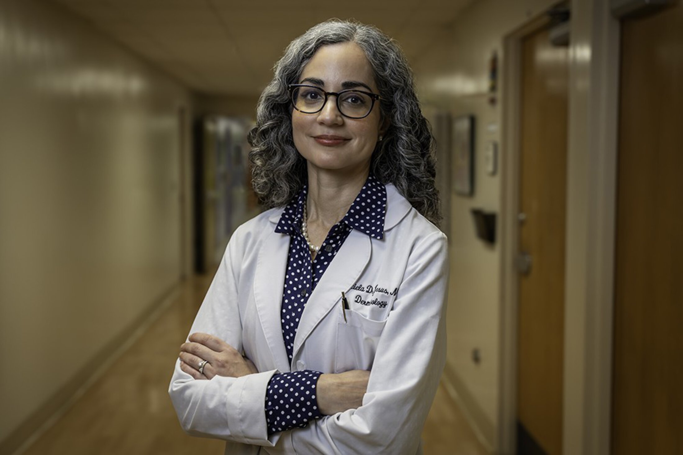 MUSC Health dermatologist Graciela De Jesus, M.D., sees patients referred to her from the Hereditary Cancer Clinic, providing them with regular skin checks and education about steps they can take to reduce their already heightened risk of skin cancer, particularly melanoma.