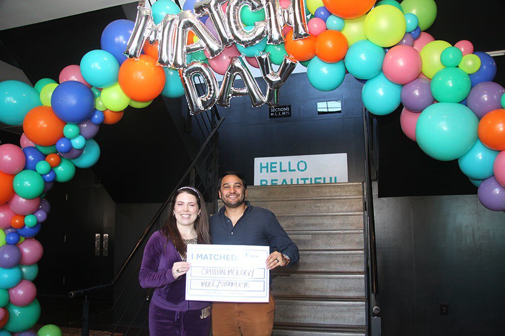 Fourth-year medical student Taylor DeHart and husband Shawn Patel celebrate her Ophthalmology match at MUSC.
